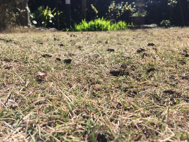 芝生が芽吹いてきたので、土壌に空気を入れてやりました。 (私じゃなく澁川がですが) エアレーションと言うそうです。 えっ?なんか汚いものに見