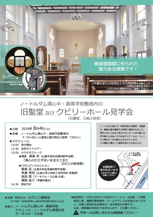 ノートルダム清心の旧聖堂について、見学会のまとめとして冊子を作ることになりました。 アーキウォーク広島 高田真さんの多大なるご協力のもと。
